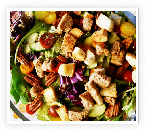 - Spread cubed mixture onto a flat baking tray, and bake for 10-15 minutes until golden brown, cool, and add to your salad!